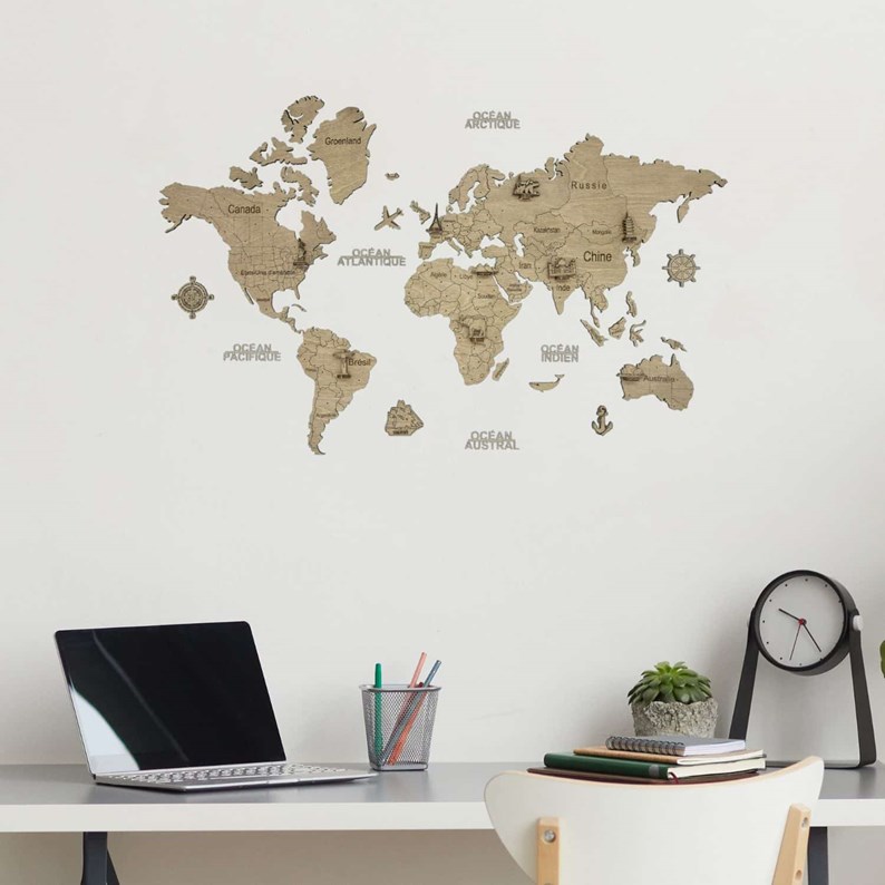 Ajoutez une touche de globe-trotteur à votre intérieur avec la Carte du Monde en Bois 2D de Creatifwood. Une décoration élégante et éducative qui inspire les rêves de voyage et la découverte du monde.