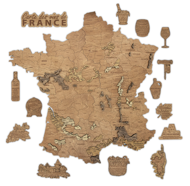 - Cette carte en bois invite à faire le tour de France des vins pour devenir incollable sur la viticulture.