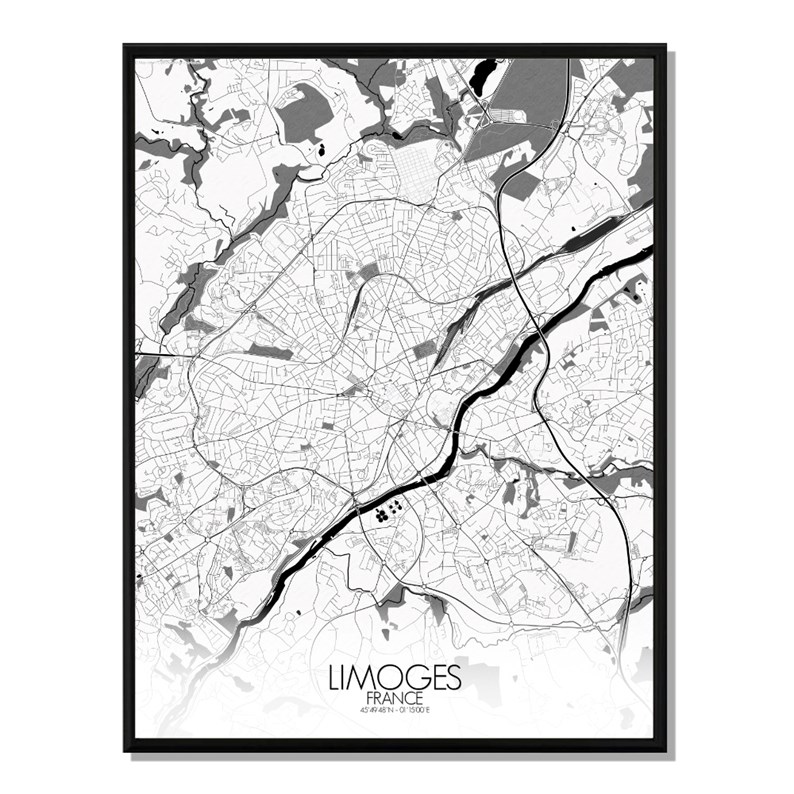 Limoges carte ville city map n&b
