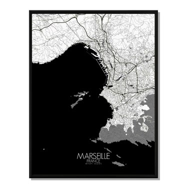 Marseille carte ville city map n&b