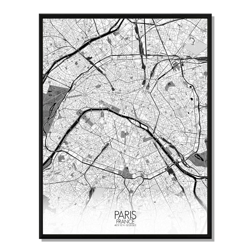 Paris carte ville city map n&b