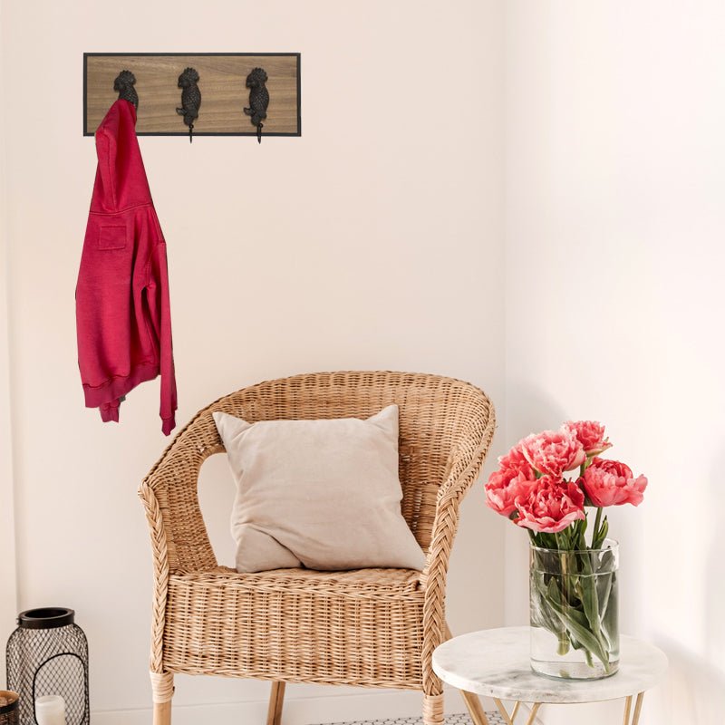 - 3 crochets : Trois crochets en métal imitant un perroquet accompagnent ce magnifique porte manteau mural aux finitions soignées et recherchées. Elles seront à l’origine d’un style vintage et classique et accueilleront avec élégance vos vestes, manteaux, écharpes ou chapeaux.