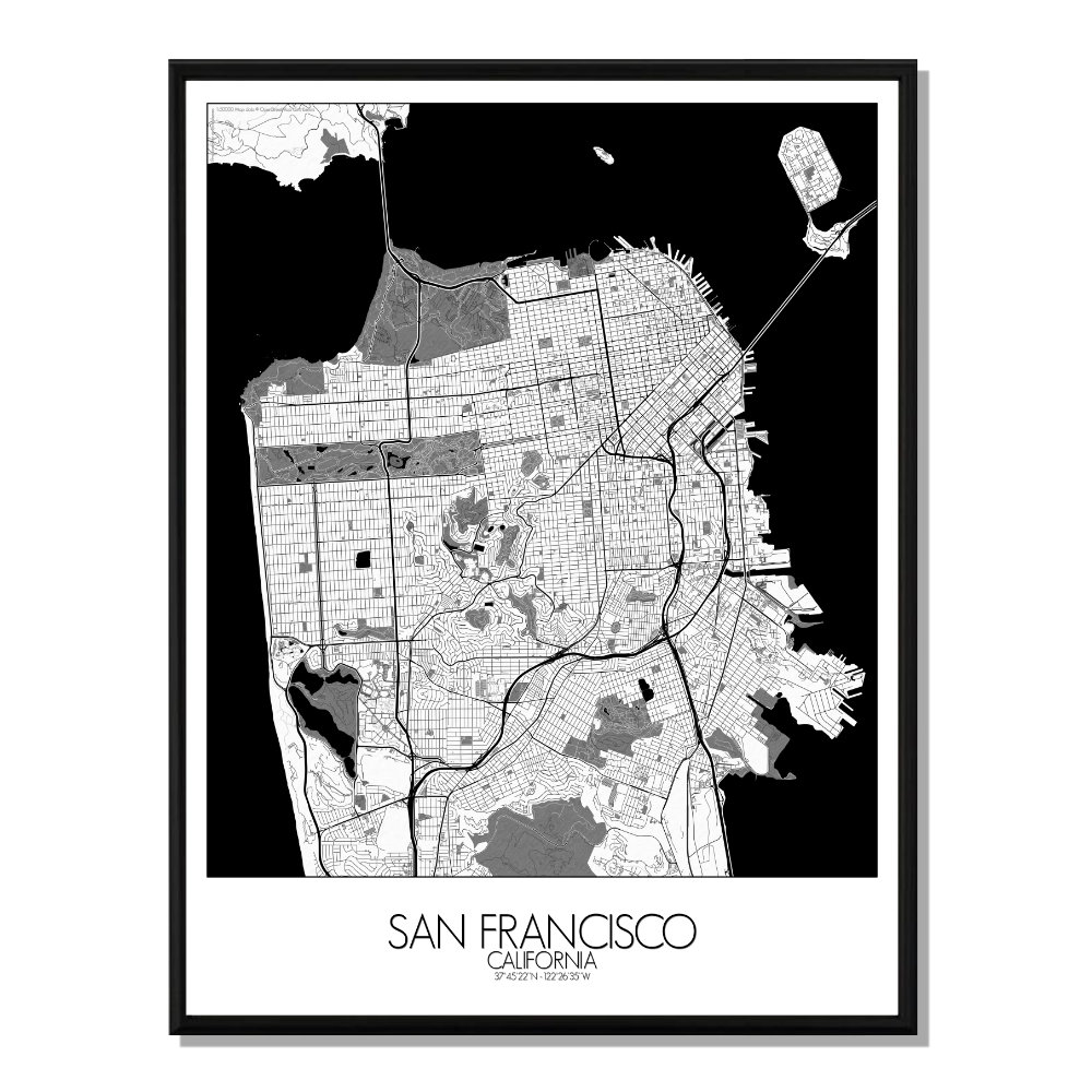 San francisco carte ville city map n&b