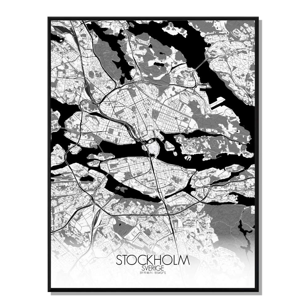 Stockholm carte ville city map n&b