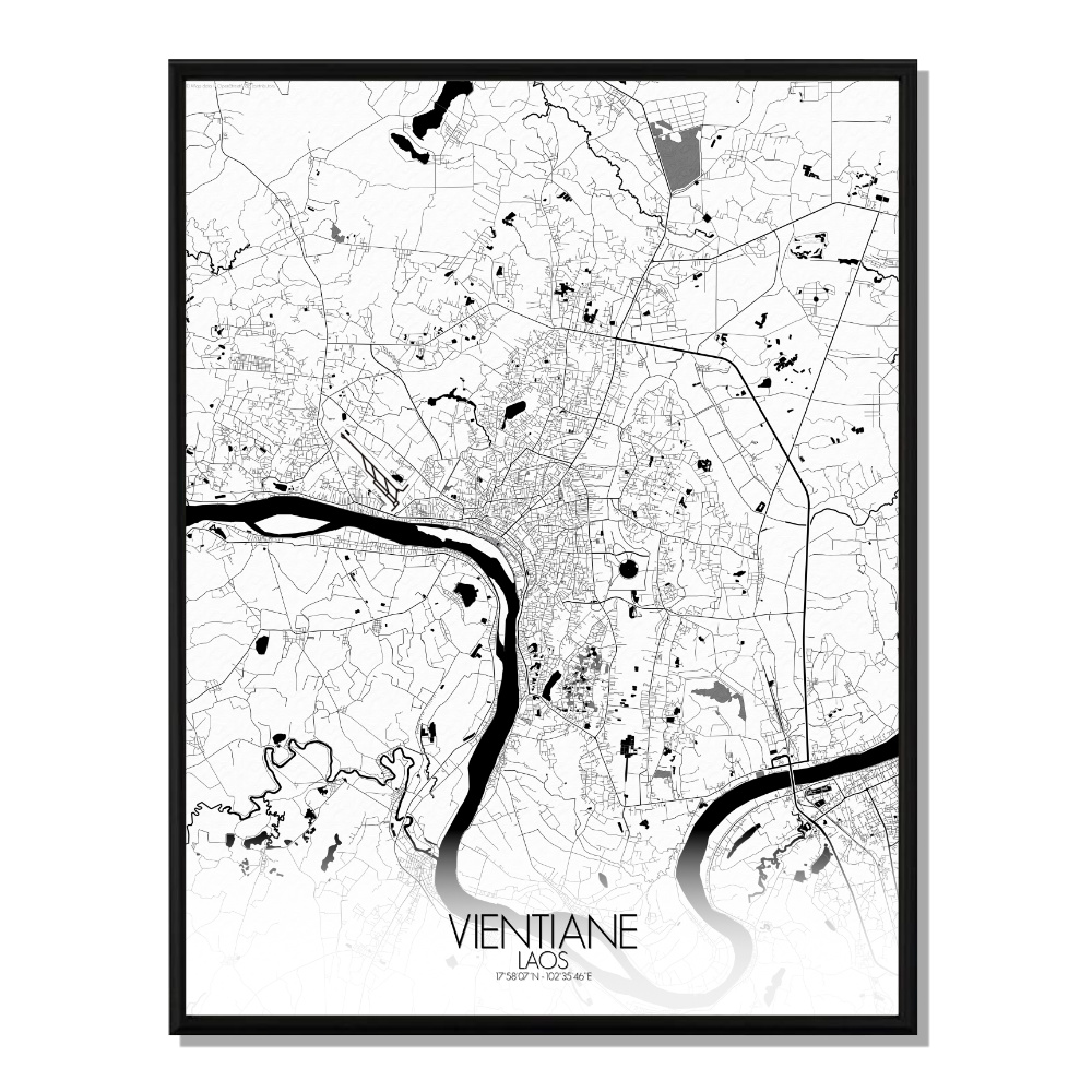 Vientiane carte ville city map n&b