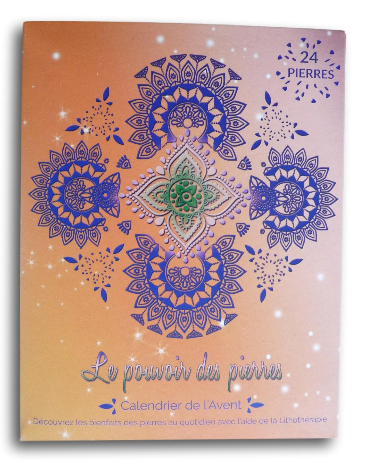 Découvrez les bienfaits des pierres au quotidien avec l'aide de la lithothérapie.La lithothérapie est un art basé sur l'utilisation des pierres précieuses et semi-précieuses afin d'harmoniser les énergies d'une personne ou d'un lieu.Les 24 pierres de ce Calendrier de l'Avent ont été soigneusement sélectionnées pour leurs propriétés variées, en fonction de leur composition chimique, leur couleur et leur forme. Pour bénéficier des bienfaits des pierres, placez-les sur vous ou autour de vous.