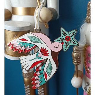 Décoration de Noël émaillée à suspendre avec cordon, en métal dorée, sans nickel. Un cadeau parfait pour vos proches ou pour vous-même, notre ornement de Noël à suspendre est un véritable incontournable pour une ambiance enchantée. Un design réalisé par la créatrice française Zabeil pour la marque Hirondelles & Cie. Hauteur environ 10 cm.