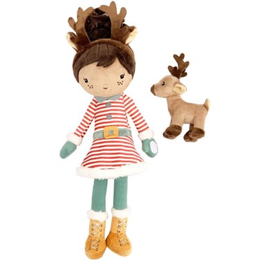 Avec ses bois de renne et son petit compagnon à câliner, Evi invite votre enfant à vivre un Noël plein de tendresse et de douceur. Sa tenue rouge et blanche, ses bottines fourrées et son regard bienveillant en font un cadeau plein de charme.