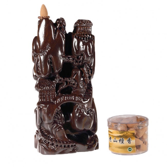 Magnifique fontaine à encens sur le thème des paysages d'Asie, entre montagnes et vallées verdoyantes ! Ce splendide objet décoratif offre un spectacle étonnant. Il suffit simplement de positionner un cône d'encens, confectionné de façon artisanale, sur l'emplacement prévu à cet effet au sommet de la fontaine. Comme le cône d'encens est percé en son centre, il se consume et crée un phénomène de cheminée. Une fumée se dégage alors vers le bas. Ainsi, si vous allumez le cône d'encens posé au sommet de la montagne, une fumée dévalera les escaliers escarpés à flanc de montagne. Le coffret fontaine à encens Paysages d'Asie contient : - 1 fontaine à encens - 1 pot d'encens de cônes spéciaux Cette étonnante fontaine à encens trouvera une place de choix sur une table ou un meuble. De fabrication artisanale, ce merveilleux objet de décoration ravira les amateurs de traditions asiatiques et séduira les néophytes ! Voici une idée cadeau plus qu'originale à offrir à ses proches, amoureux de traditions chinoises. Matière de la fontaine à encens paysages d'Asie : bois compressé. Dimensions de la fontaine à encens paysages d'Asie : 25 cm de hauteur, 12 cm de largeur, 7 cm de profondeur. Couleur de la fontaine à encens paysages d'Asie : marron. INFORMATIONS : Les cônes d'encens percés, de part leur fonctionnement, brûlent beaucoup plus vite qu'un cône d'encens traditionnel. Pour un spectacle optimal, il faut éviter de placer votre fontaine à encens dans une zone de courant d'air.