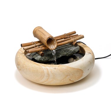 Fontaine en pierre et bois de bambou
