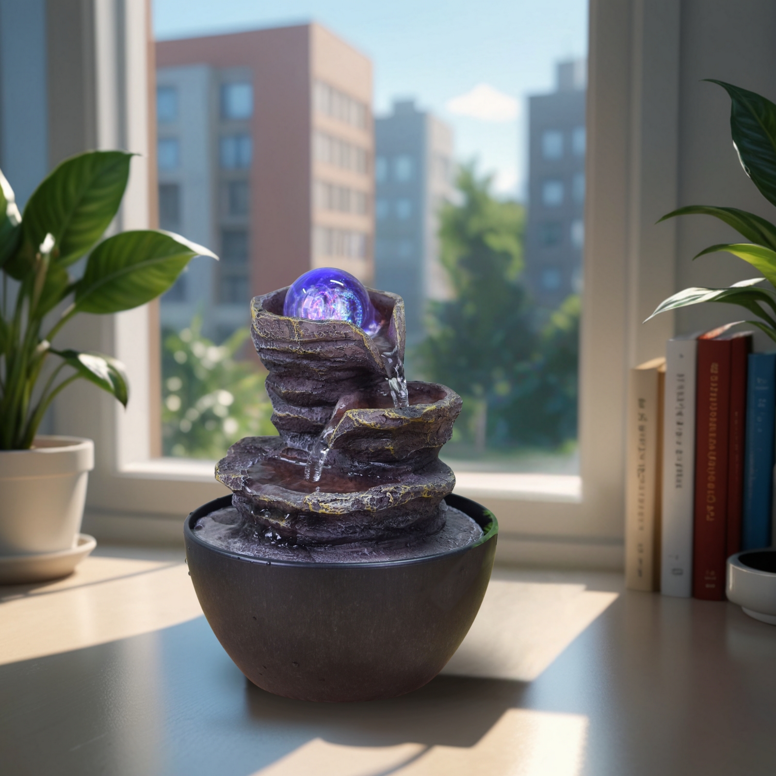 La fontaine Zen'Light Guru est l'élément décoratif qui manque à votre intérieur pour créer une atmosphère zen essentielle à vos moments de détente et de relaxation. Elle propose un écoulement d'eau naturel sur 4 niveaux avec différentes vasques et mis en valeur par un éclairage LED coloré entraînant la boule en verre dans une rotation infinie. La fontaine se caractérise par son style moderne et sobre, elle inspire véritablement la zénitude.