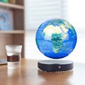 Ce planisphère flottant est disposé au dessus d'une base au contour circulaire soulignée par un discret et élégant faisceau de lumière bleue.