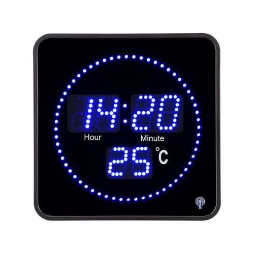 Sur cette horloge déco au design épuré et moderne, 185 LED bleues tournent et clignotent autour de l'écran marquent les secondes alors que l'heure et les minutes sont en affichage fixe.
