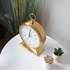 CARACTÉRISTIQUES - Matière : Acier, verre - Dimensions : Base 23 cm, cadran 19 cm, Hauteur totale : 28 cm, Épaisseur : 6 cm - Alimentation : 1 pile AA (non incluse) - Radiopilotée - Mouvement silencieux