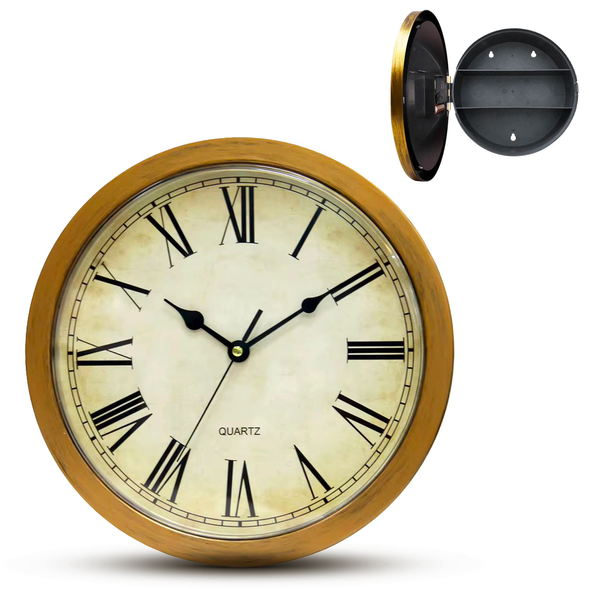 Horloge secret box copper, rétro, ø 25 cm, compartiment secret
