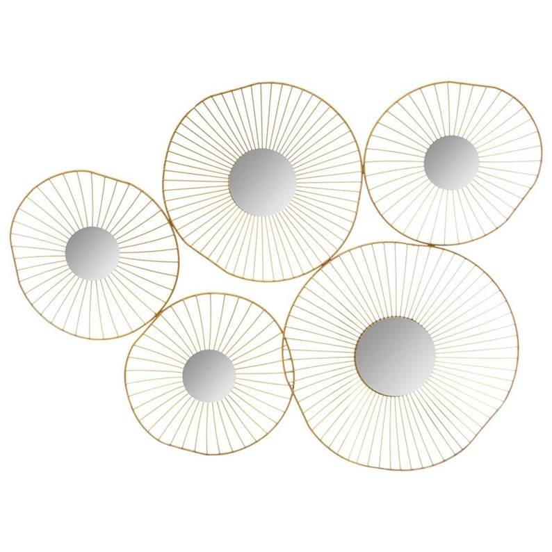 Décoration murale métal 5 miroirs or