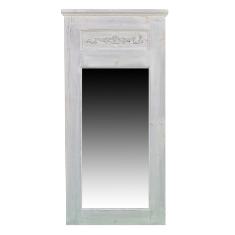 Grand Miroir Ancien Rectangulaire Vertical Bois Cerusé Blanc 58x4x118cm.