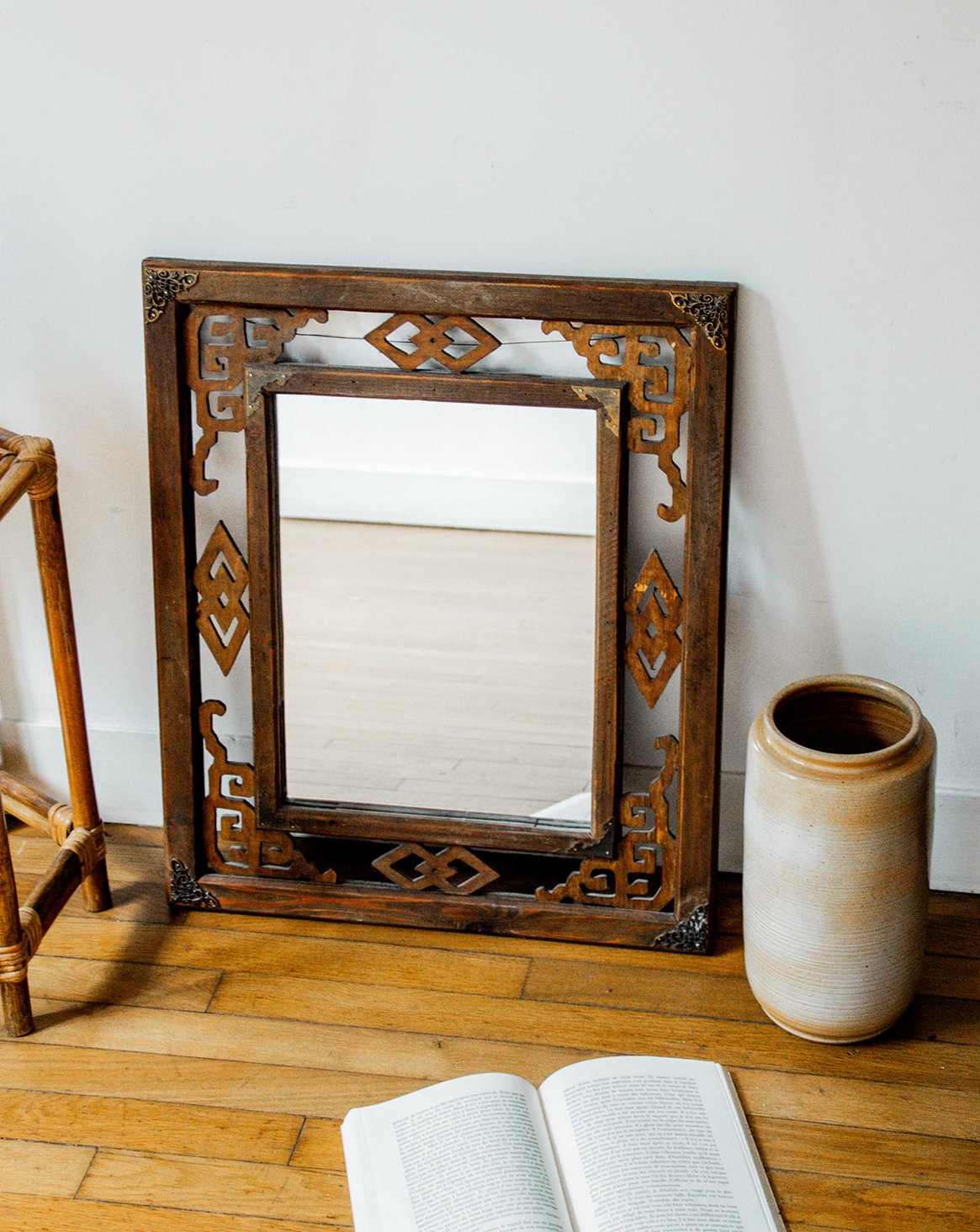 Découvrez ce miroir carré asiatique ancien avec sa structure en bois authentique. Il porte quelques marques du temps qui ajoutent à son charme unique. Son design sobre et élégant s’adapte à tous les intérieurs. Une pièce pleine de caractère qui apportera une touche d’histoire à votre décoration. Idéal pour sublimer un mur ou un coin lumineux.