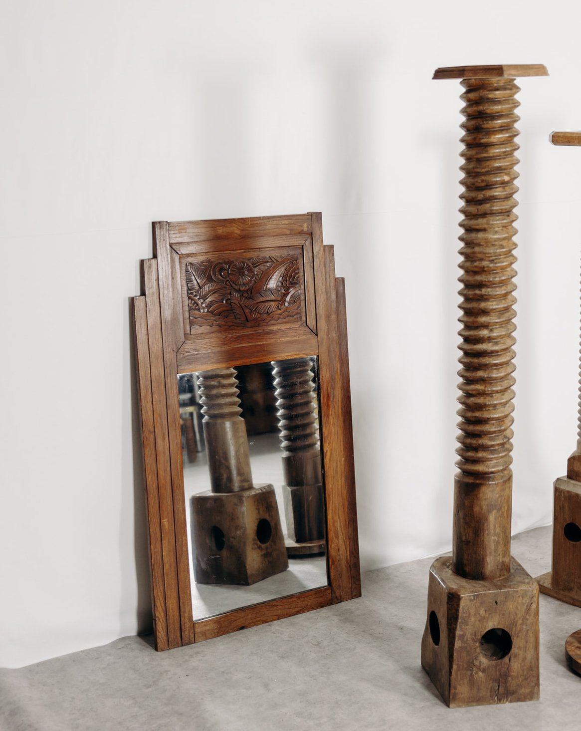 Coup de cœur pour ce miroir en bois style Art Déco ! Ce superbe miroir allie élégance et fonctionnalité avec sa grande glace et son cadre en bois orné de délicates gravures florales sur le haut. Son design apporte une touche vintage et chic à votre intérieur, parfait pour sublimer une entrée, un salon ou une chambre.