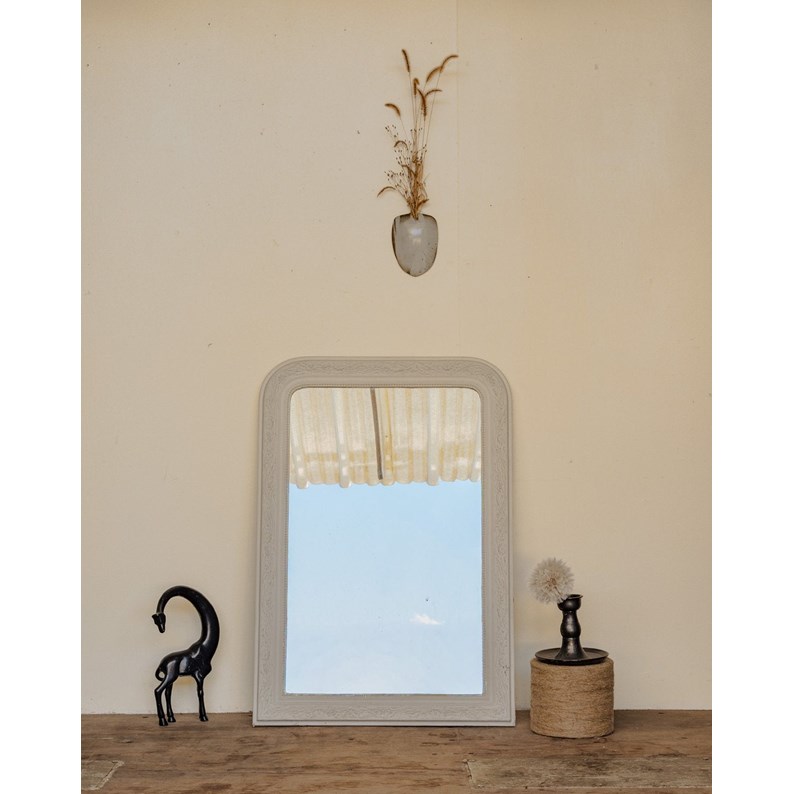 Sublimez votre intérieur avec ce miroir Louis-Philippe au cadre arrondi en bois peint en blanc, orné de délicates moulures florales qui apportent une touche romantique et raffinée. Sa présence capte la lumière et structure l'espace, parfait au-dessus d'une cheminée ou d'une console pour agrandir visuellement une entrée ou un salon. La patine douce du cadre raconte son histoire en douceur tout en conservant une élégance discrète. Quelques traces du temps présentes.