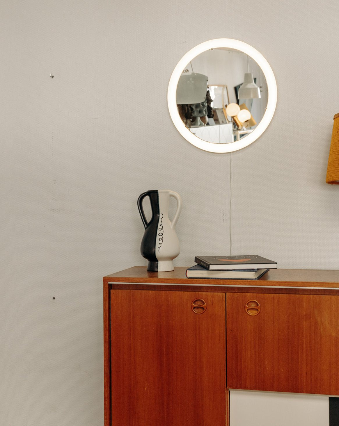 Découvrez le miroir lumineux, un accessoire chic et fonctionnel pour embellir votre espace. Avec son design rond imaginé par Henrik Preutz, ce miroir rétro-éclairé apporte une touche moderne tout en offrant une luminosité agréable grâce à son éclairage LED intégré. Bien que légèrement piqué sur les bords, son bon état général vous permettra de profiter de cette pièce vintage recherchée, désormais plus éditée par Ikea. Idéal pour les salles de bains ou les coiffeuses, il allie style et praticité.