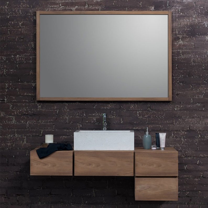 Pour une salle de bain naturelle, optez pour ce miroir en bois de teck massif. Esprit zen garanti. Le miroir dispose d'accroches permettant de le fixer à la verticale ou à l'horizontal. Caractéristiques : Matière : teck - Couleur : naturel - Hauteur : 80 cm - Largeur assise : 145 cm - Poids : 12 kg - Garantie : 2 ans - Montage : Livré monté. Les + : teck – bois massif – grande taille.