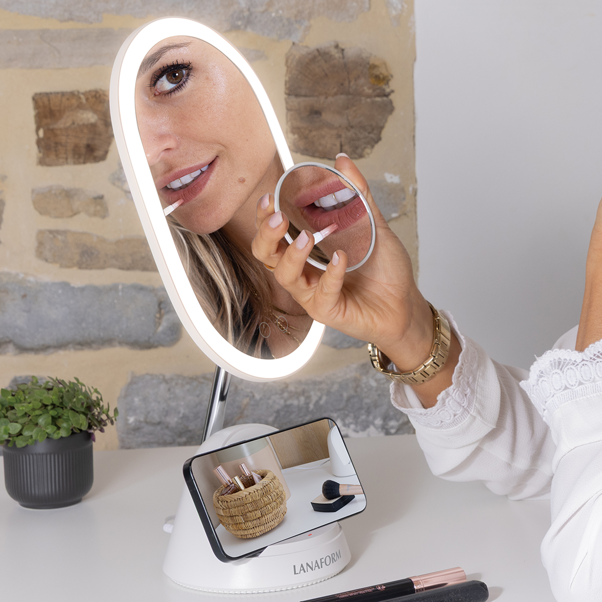 Le miroir de maquillage LED LumiCharge transforme chaque moment beauté en une expérience précise et fonctionnelle. Pensé pour répondre aux exigences du maquillage moderne, il associe design contemporain et technologies pour vous accompagner jour après jour.