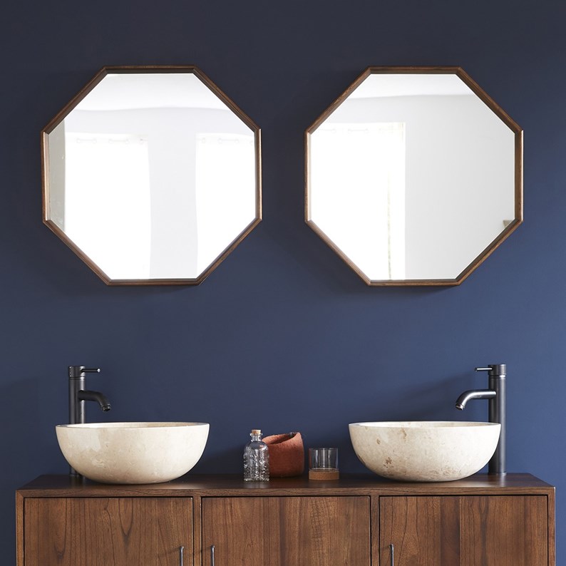 Miroir octogonal bois mindi