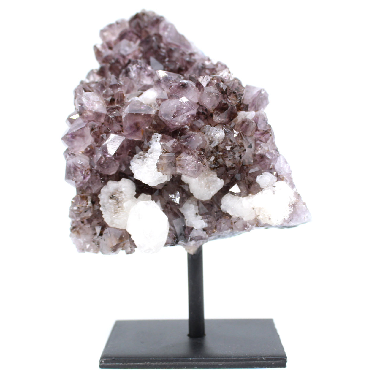 Améthyste : L’améthyste est une variété de quartz de couleur violet composée de dioxyde de silicium. Il s'agit d'une pierre fine voir précieuse utilisée en bijouterie et comme pierre d'ornement. Sa couleur, couvrant quasiment tous les tons du violet, du très clair au pourpre très soutenu, est dû aux inclusions de fer qu'elle contient. C'est une pierre autrefois rare mais d'important gisements ayant été découverts au début du XXième siècle au Brésil et en Uruguay, elle est désormais une pierre commune.
