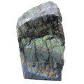 Labradorite : La labradorite est un minéral dont la particularité de certaines pièces est d'avoir des éclats de couleurs métallique appelé labradorescence. Le vert et le bleu sont les couleurs les plus répandues, mais on en trouve aussi ayant des éclats jaunes, orange et même parfois violets. Les pièces de la meilleure qualité peuvent posséder chacune des couleurs du spectre. La labradorescence est le dû aux interférences dans les lamelles minérales constituant la roche. La pierre de labradorite appartient à la famille des feldspaths et est composée principalement de sodium, de calcium, de fer et de potassium. Cette pierre se forme dans les roches magmatiques ou métamorphiques.