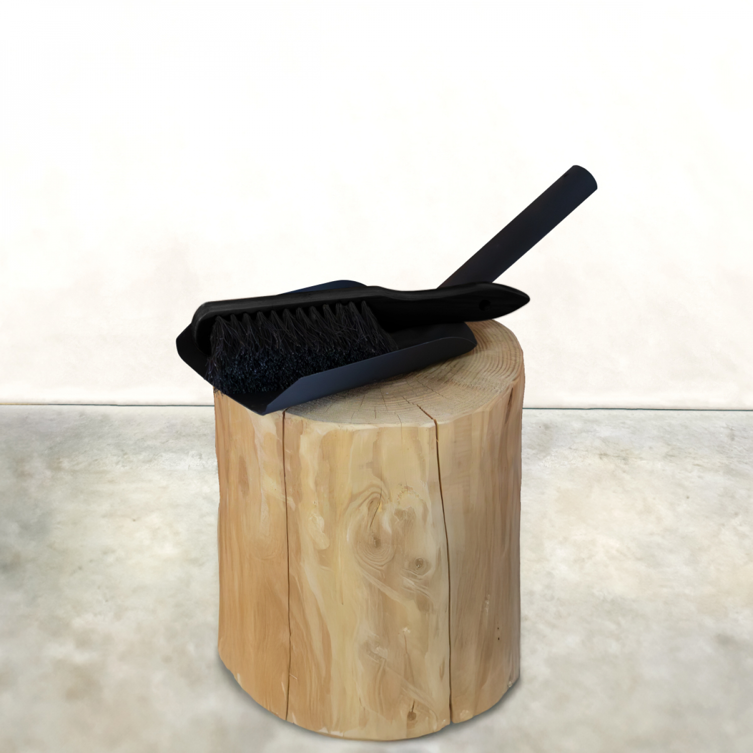 Robuste , la pelle est en  fer  et dispose d'un récipient plat pour accueillir les cendres ou encore le charbon. La balayette est en  bois  et détient une brosse souple.