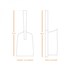 La pelle mesure  39 cm de long, 14 cm de large  et son plateau représente 21.5 cm. La balayette, quant à elle, mesure  28 cm de long et 4.3 cm de large.