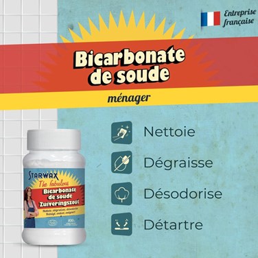 Indispensable dans la maison, le bicarbonate de soude en pot de la marque Starwax est un produit multi-usages, sain et 100% d'origne naturel.