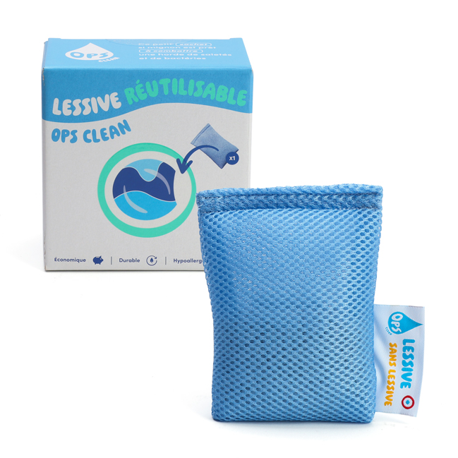 - Avec seulement 15g de CO2 émis par lavage, Ops Clean bat de loin les autres solutions de lessives qui émettent jusqu'à 295g de CO2. En plus, elle ne rejette aucun polluant dans l'eau.
