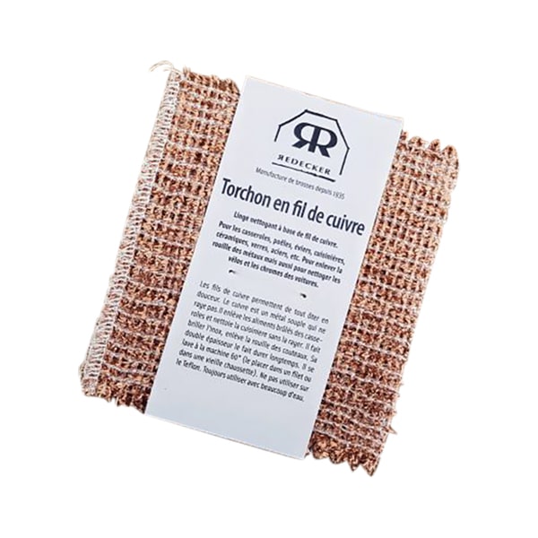 Le torchon à récurer en cuivre ne raye pas vos ustensiles (mais il ne faut pas l'utiliser sur le teflon) et ne rouille pas.