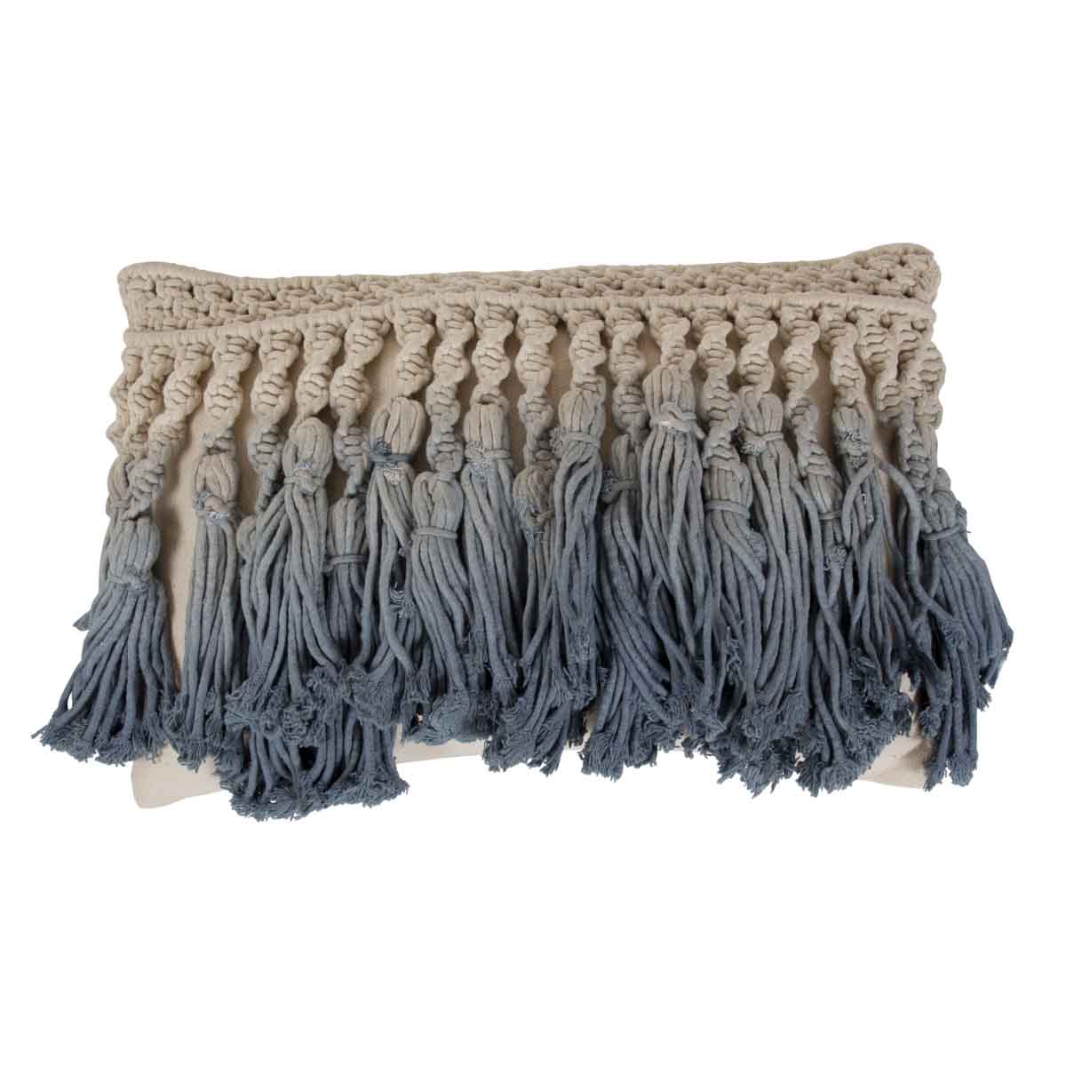 Housse de coussin écru et bleu en coton