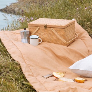 Le modèle Lin Blé en lin, une matière noble confectionnée en France sans lavage industriel. Le matelas de sol est un accessoire nomade et multi usages, en bout de lit ou sur une banquette transportez le partout grâce à sa poignée