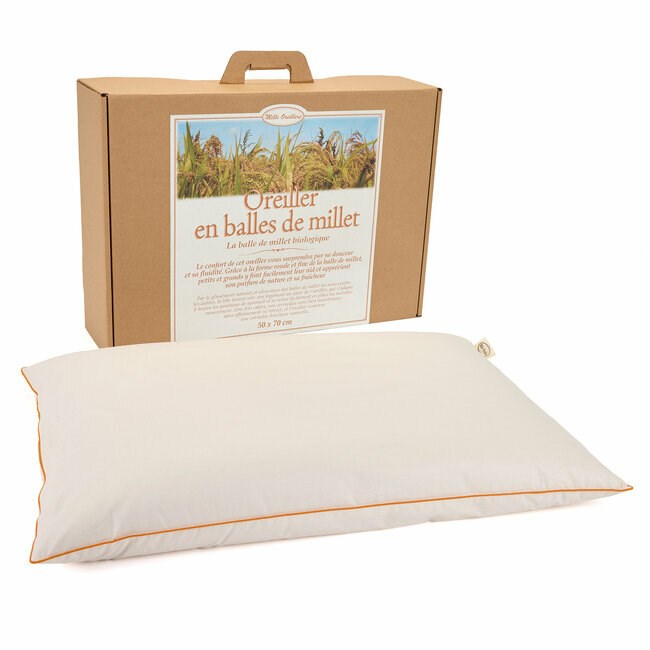 L' oreiller millet 50x70 cm de la marque Mille oreillers est un oreiller bio et naturel qui assure un bon maintien des cervicales tout en fluidité grâce à son garnissage en balles de millet issues de l'agriculture biologique.
