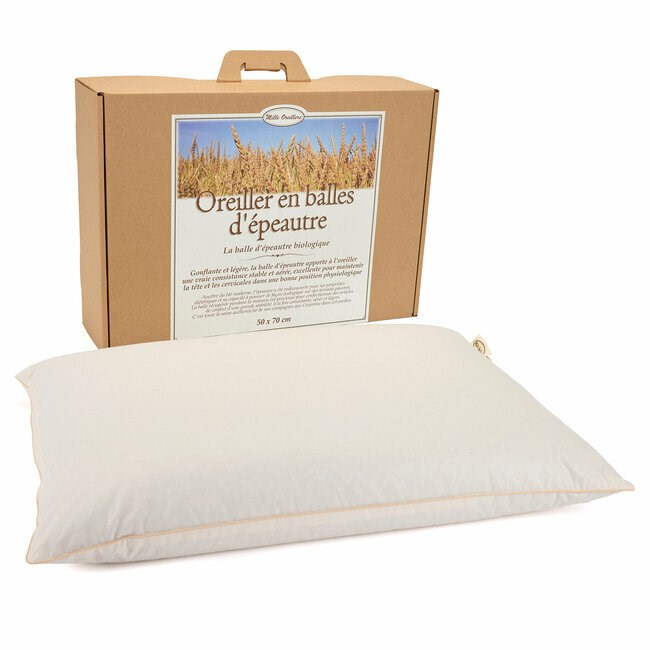 L' oreiller d'épeautre 50x70 cm de la marque Mille oreillers est un oreiller bio et naturel qui assure un maintien à la fois souple et stable des cervicales grâce à son garnissage en balles d'épeautre issues de l'agriculture biologique.