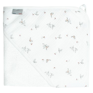 La première cape de bain de bébé pour le  sécher tout en douceur  à la  sortie du bain ou de la piscine  grâce à l'alliance de la  viscose de bambou et du coton . Le design printanier de la  Collection Melody  avec de jolis oiseaux chantants, pour une sortie de bain réconfortante !