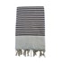 Peu encombrante, elle est idéale et pratique pour les valises cabine, et bénéficie d’un séchage ultra rapide entre deux baignades. Elle est incontournable aussi bien dans les salles de bain qu'au bord des piscines ou sur la plage. Nouée autour de la taille, la Fouta plate se transforme également en paréo.