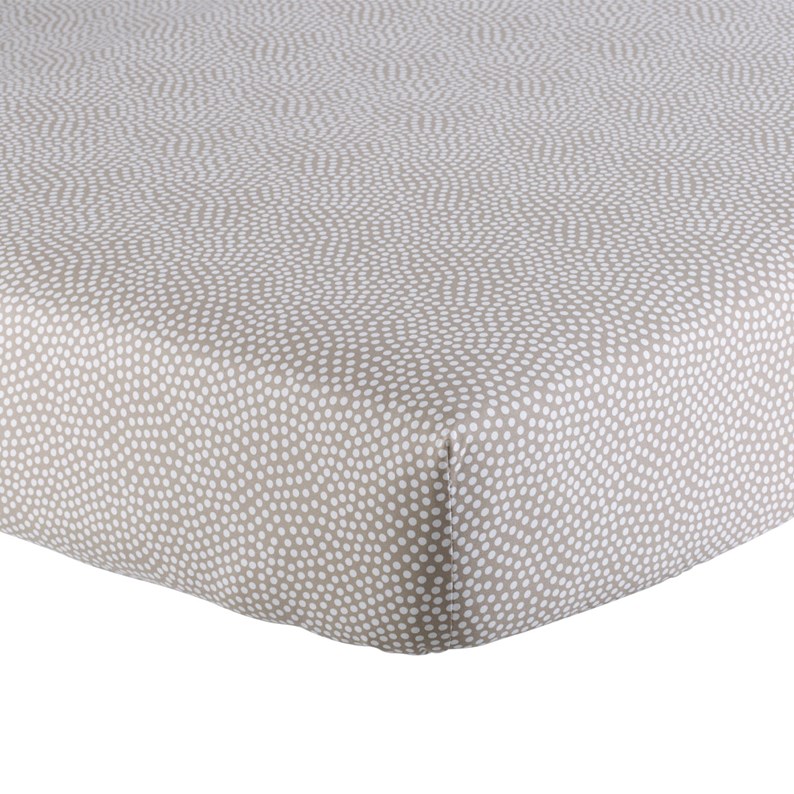 Housse de couette, taie d’oreiller, drap plat : les pièces qui composent le lit s’habillent de bulles bleues, rose violine et beiges sur fond blanc. Un motif pimpant associé - en revers de la housse de couette et sur le drap-housse - à un fond beige taupe recouvert de légers pois blancs. Un mélange à la fois fun et doux qui égaie les intérieurs les plus sages.