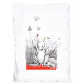 Housse de couette enfant, 80cm x 120cm, fermée par 3 boutons en base, sérigraphie placée devant, Martin le lapin, dos uni blanc. Textile très doux au toucher, belle qualité.