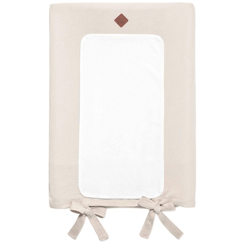 Douce et confortable , cette housse est composée de gaze de coton et de viscose de bambou (uniquement sur partie où le bébé est changé) certifiés.