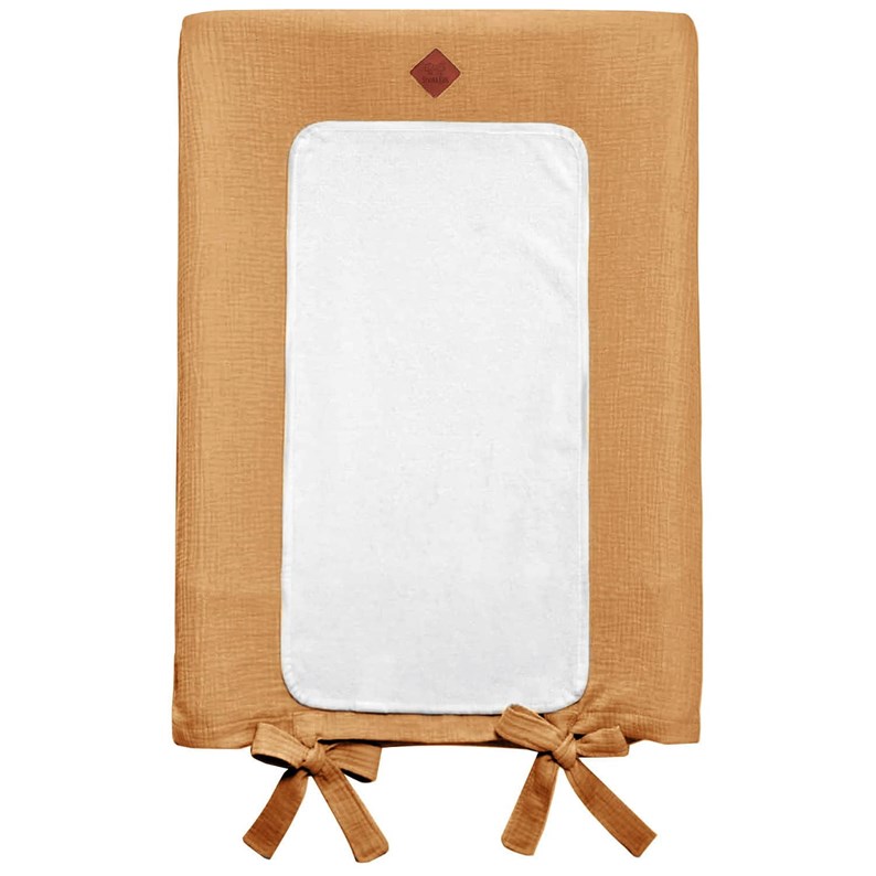 Douce et confortable , cette housse est composée de gaze de coton et de viscose de bambou (uniquement sur partie où le bébé est changé) certifiés.