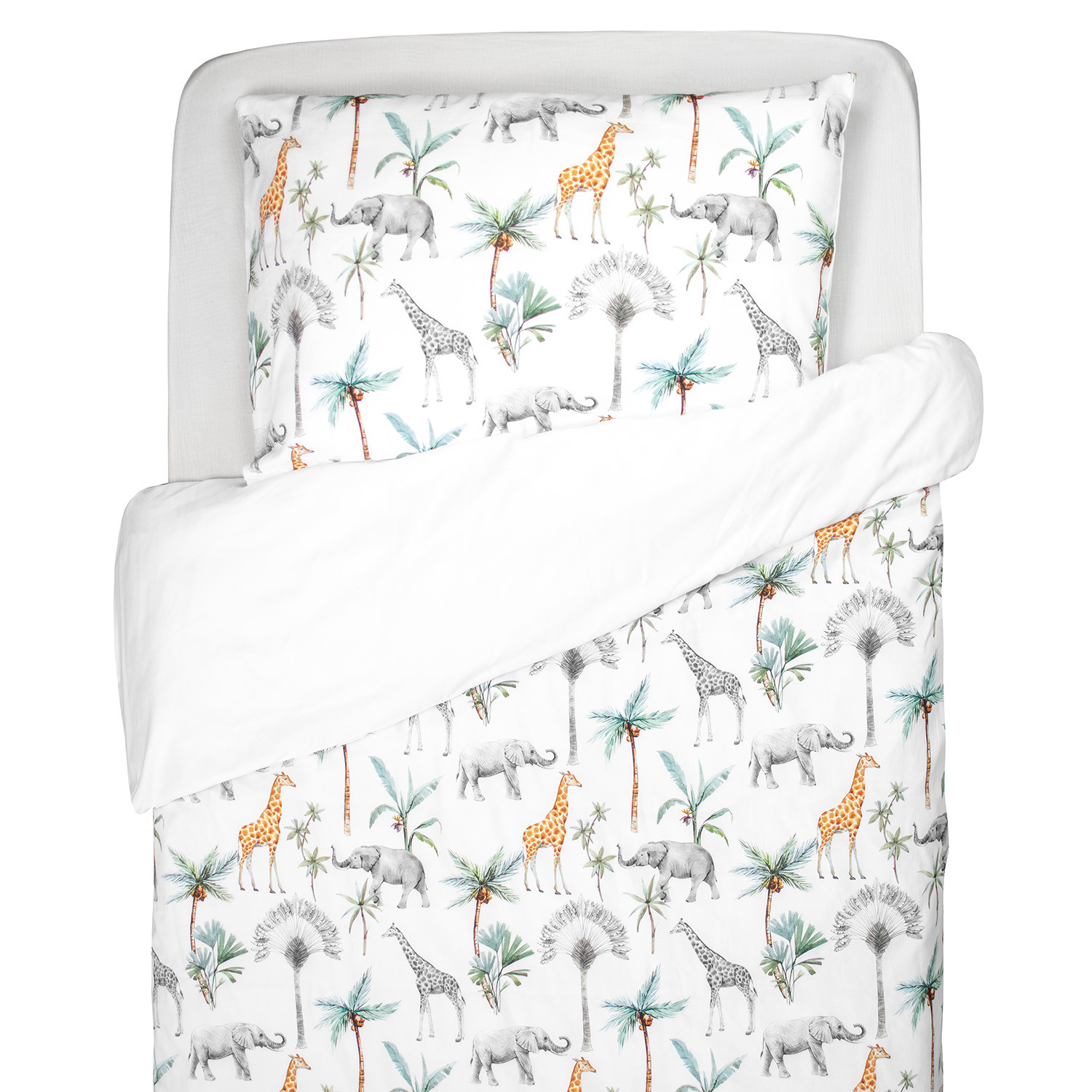 Associez cette parure avec le drap-housse en gaze de coton blanc, gris clair ou vert de gris. la chambre de votre enfant en mixant la gamme Safari avec notre collection Jeanne , ou encore nos best-sellers aux motifs Safari incontournables.