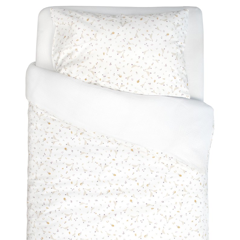 Offrez à votre enfant des nuits douces et confortables avec notre parure de lit Sidonia , confectionnée en 100% coton. Ornées de délicats motifs d'oies, de baies, et de fleurs à l'esprit minimaliste, cette parure de lit garantit un confort exceptionnel . Composée d'une housse de couette et d'une taie d'oreiller , elle est fabriquée avec des matières de haute qualité certifiées , pour la sécurité et le bien-être de votre enfant, sans substances nocives.