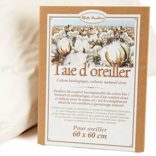 La taie d'oreiller en coton bio 60x60 cm de la marque Mille oreillers permet d'habiller votre oreiller naturel préféré pour un confort naturel et incomparable.