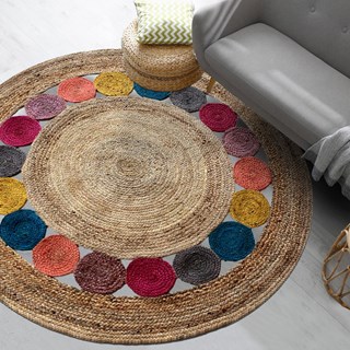 Tapis rond est idéal pour la décoration de la maison. Aux motifs Ethnique, tapis rond a été sélectionné pour son visuel, ses couleurs, mais aussi pour sa qualité. Il habillera à merveille tous types d'intérieur qu'ils soient modernes ou classiques. tapis rond Ø200cm fait à la main en jute motif géométrique pour entrée RONDA