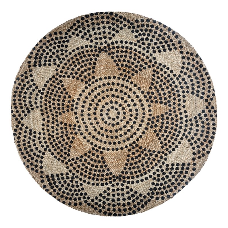 Magnifique grand tapis rond en jute Living pois d'un diamètre de 120 cm. Pour réchauffer votre déco, adoptez immédiatement ce tapis ethnique en juste végétale dans votre intérieur.